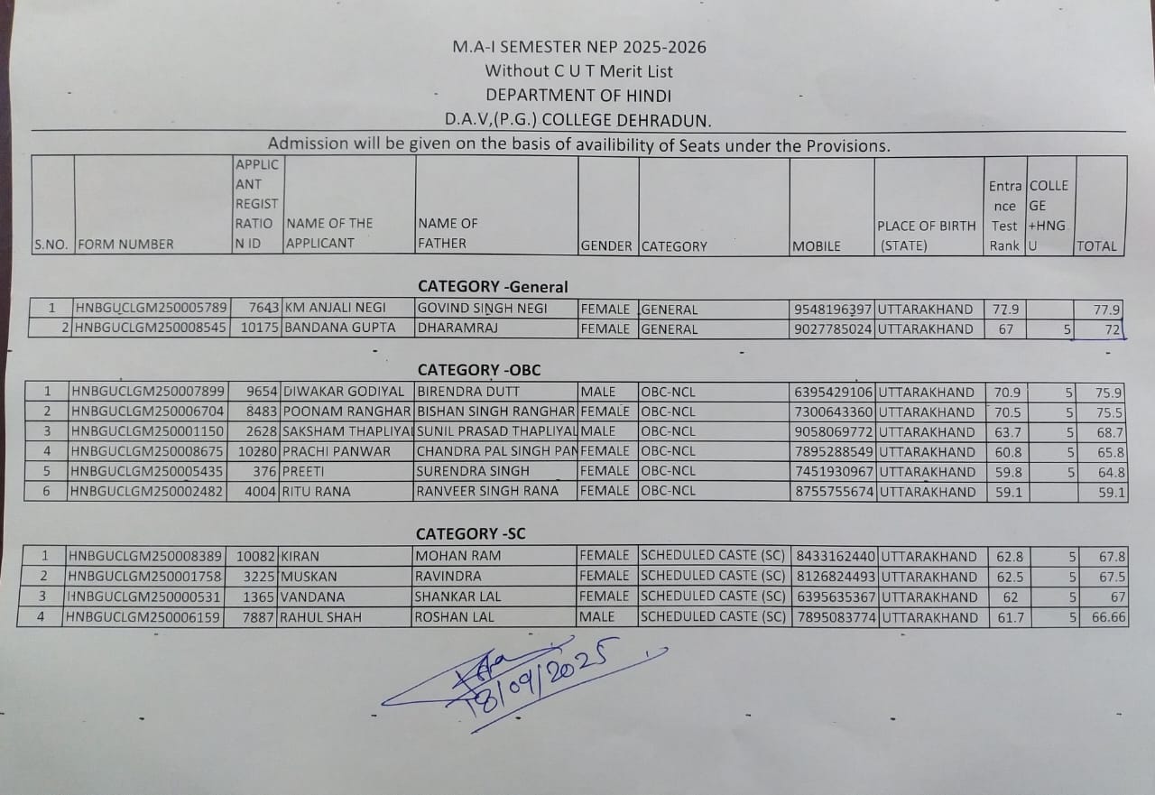 Welcome to the College Website. I appreciate your interest in our College and look forward to assisting you. D.A.V. (P.G.) College is a premier Institute of Northern India which is affiliated to Hemwati Nandan Bahuguna Garhwal (Central) University, Srinagar (Uttarakhand). Throughout its storied history of more than hundred years- D.A.V. (P.G.) College Dehradun has had a glorious past, promising present and road map for bright future.