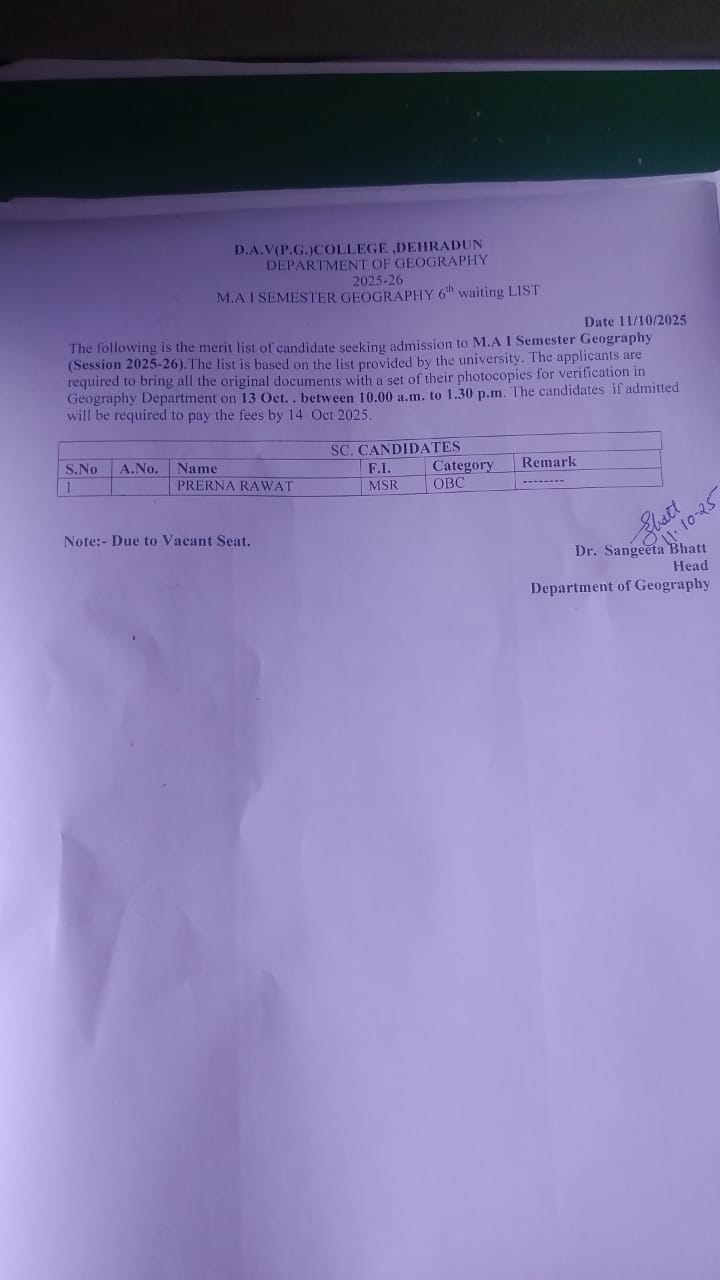 Welcome to the College Website. I appreciate your interest in our College and look forward to assisting you. D.A.V. (P.G.) College is a premier Institute of Northern India which is affiliated to Hemwati Nandan Bahuguna Garhwal (Central) University, Srinagar (Uttarakhand). Throughout its storied history of more than hundred years- D.A.V. (P.G.) College Dehradun has had a glorious past, promising present and road map for bright future.